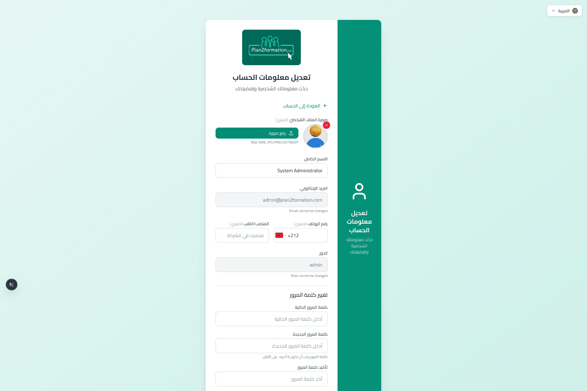 Plan2Formation is an advanced training course management system designed for inter-company collaboration. The platform supports 4 languages and features a sophisticated role-based access control system with 4 distinct permission levels (Administrator, Company, HR Manager, Employee). The system streamlines the entire training process from course creation to employee feedback collection.